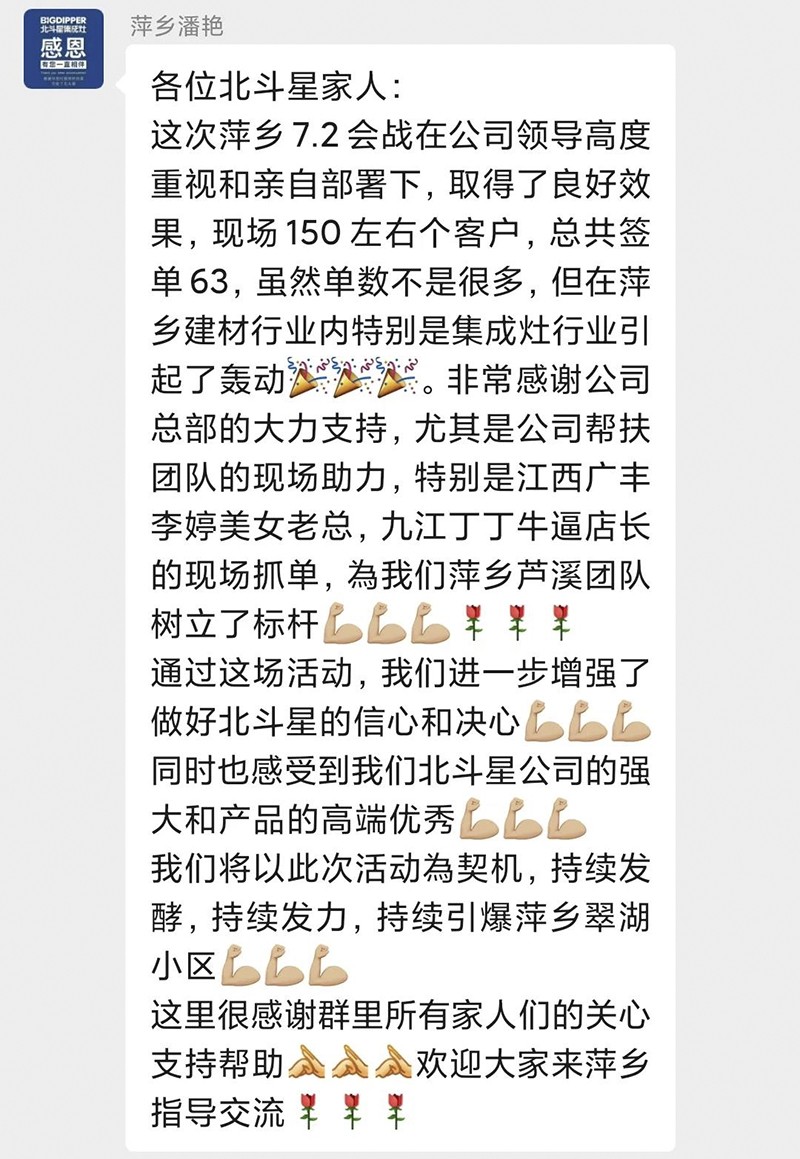 “買集成灶就是買健康”!本次萍鄉(xiāng)團購活動圓滿收官,證明了市場以及消費者對北斗星集成灶的信賴和喜愛,更是對北斗星集成灶,每一件都是爆款的重要戰(zhàn)略有力驗證。